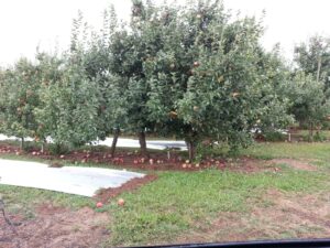 Apple orchards with rotten fruit on ground, The Gorge, Oregon, Aug 2014 (© Hank Crawford)